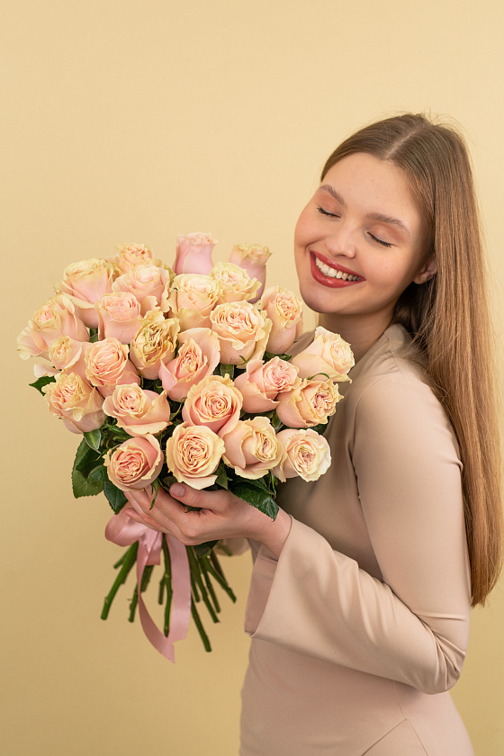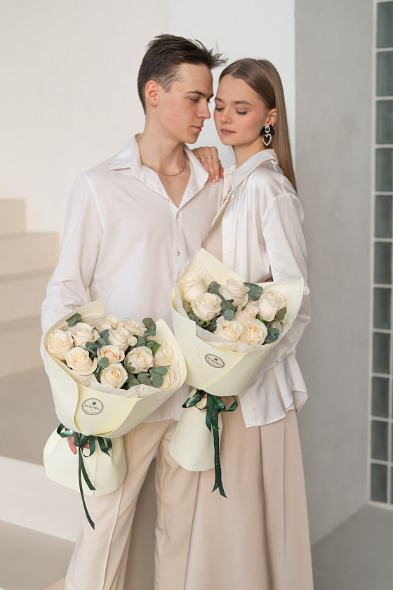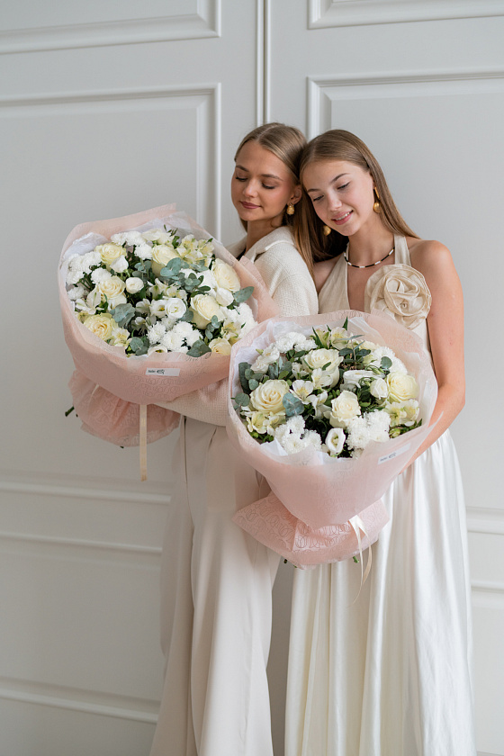 На стоимость композиции влияет упаковка, сорта, количество цветов, присутствие зелени или декоративных элементов. Цены располагаются под каждым товаром на сайте.