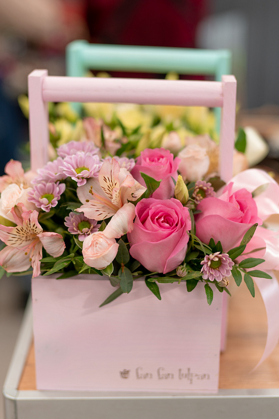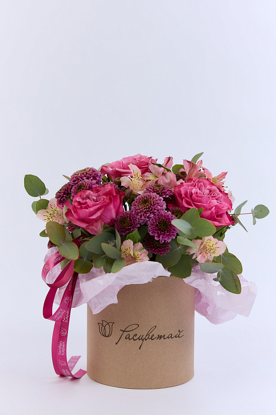 Собираем изысканные моно- и микс-композиции в корзинах, крафте, ящиках и шляпных коробках.