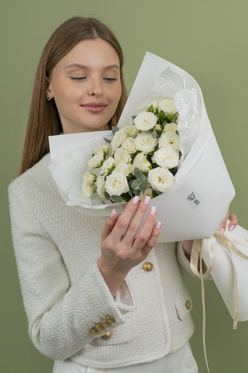 Букет из кустовых роз - это прекрасный подарок для любого случая, будь то день рождения, свадьба или просто выражение благодарности. Такой букет будет радовать вас своей красотой и ароматом на протяжении длительного времени. Дарите кустовые розы и делитесь красотой с любимыми людьми!