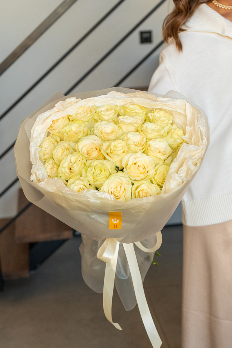 Букет из 25 белой розы - это чистота чувств и благородство намерений. Это возвышенное признание в искренних, светлых чувствах. Белый цвет олицетворяет непорочность, гармонию и вечность, а количество цветов подчеркивает серьезность и глубину намерений.