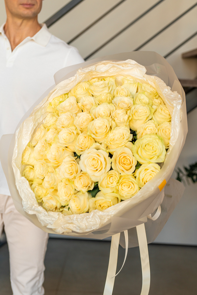 Букет из 51 белой розы - это чистота чувств и благородство намерений. Это возвышенное признание в искренних, светлых чувствах. Белый цвет олицетворяет непорочность, гармонию и вечность, а количество цветов подчеркивает серьезность и глубину намерений.