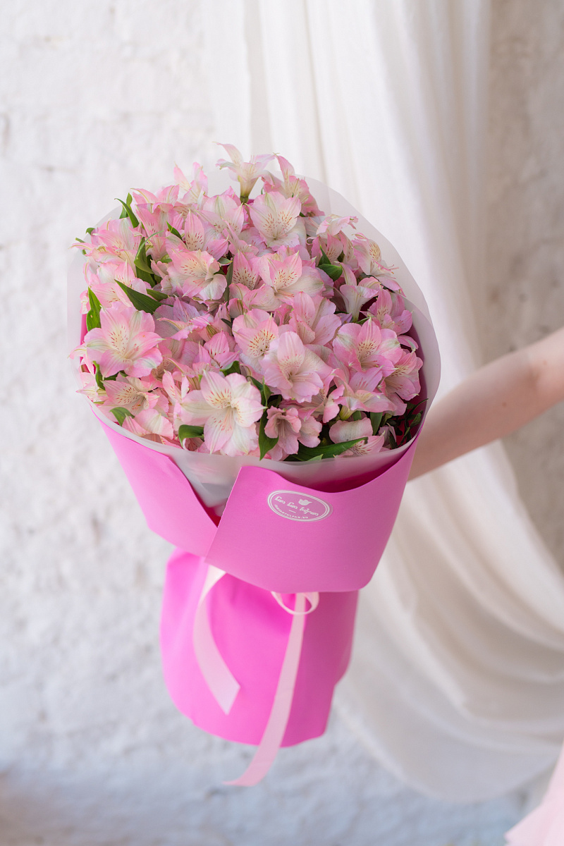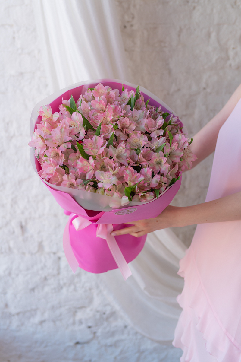 Букет из розовых альстромерий – изысканное сочетание нежности и элегантности. Эти прекрасные цветы поражают своей изящностью и олицетворяют любовь, красоту и романтику.Каждая альстромерия в этом букете – настоящий шедевр природы. Их стройные стебли украшены крупными, густо расположенными соцветиями из нежных лепестков. Причудливые формы цветов и их тонкая текстура захватывают взгляд, создавая ощущение легкости и воздушности.