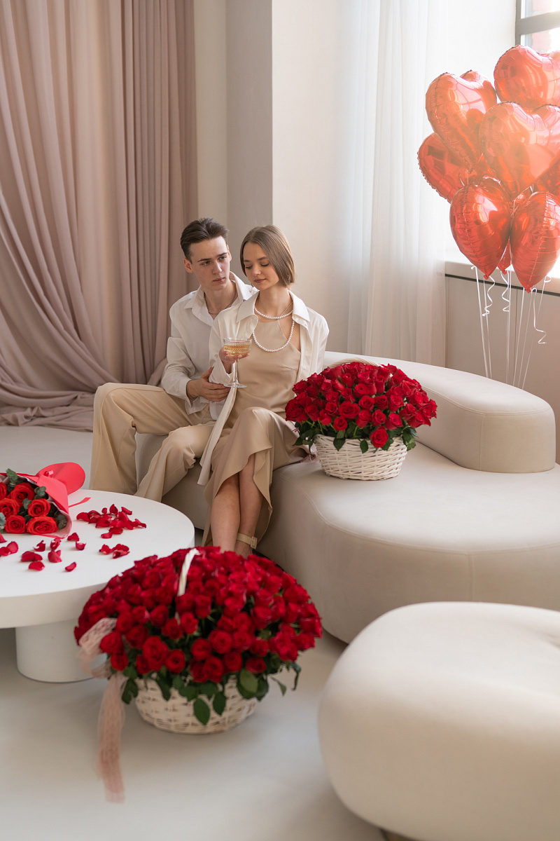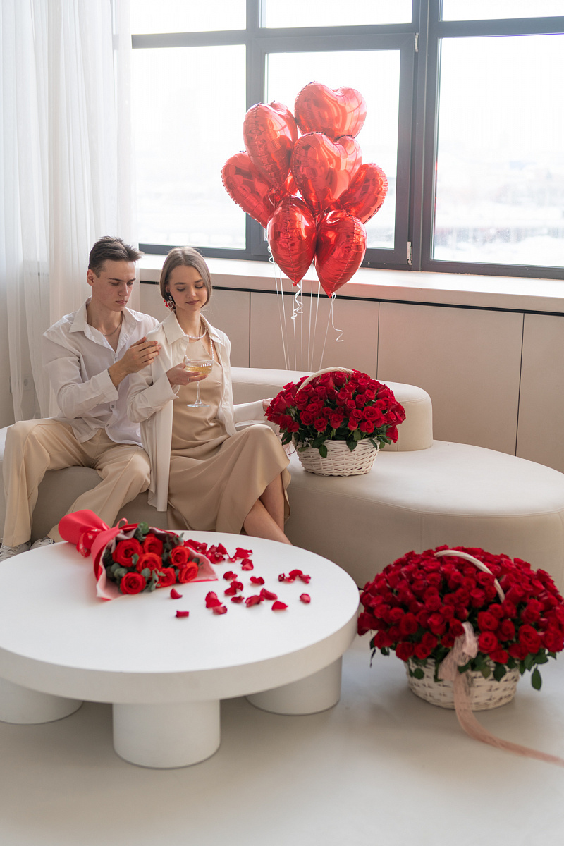 Данная цветочная композиция под запрос. Это значит что возможно у нас отсутствует какой-либо цветок в составе букета. Но мы готовы собрать похожую композицию, не чуть не менее красивую чем эта. Вы можете оставить заявку. И мы свяжемся с вами и предложим возможные варианты.