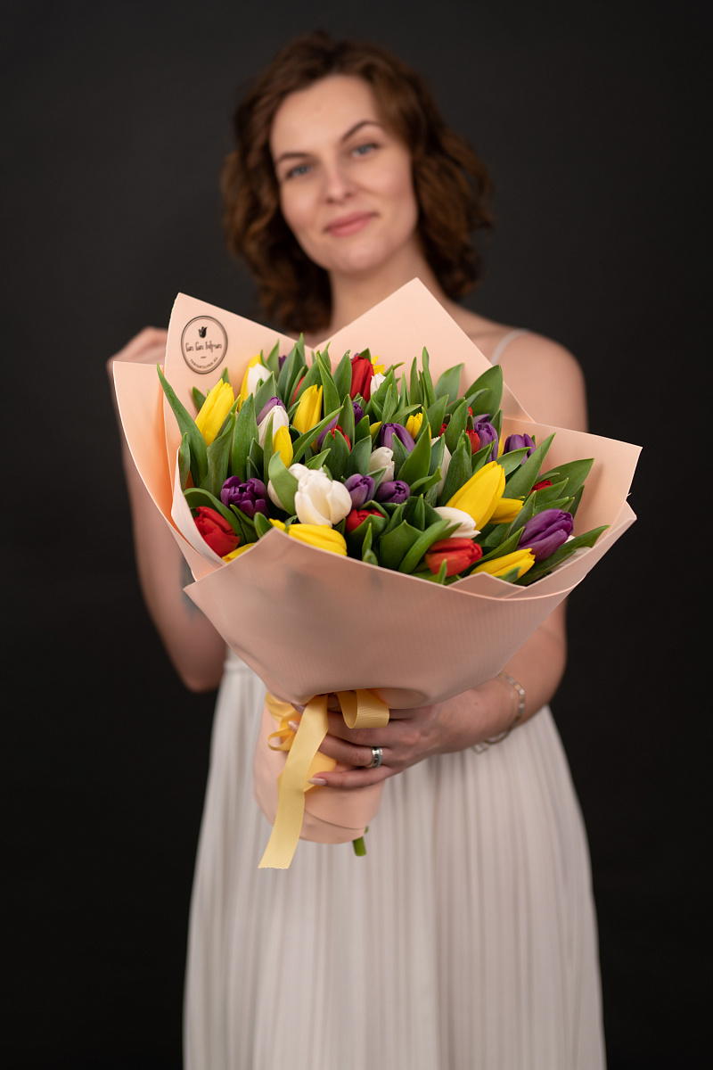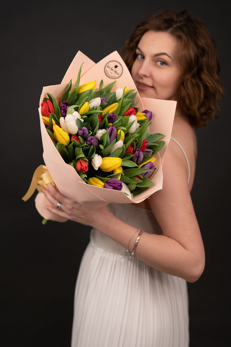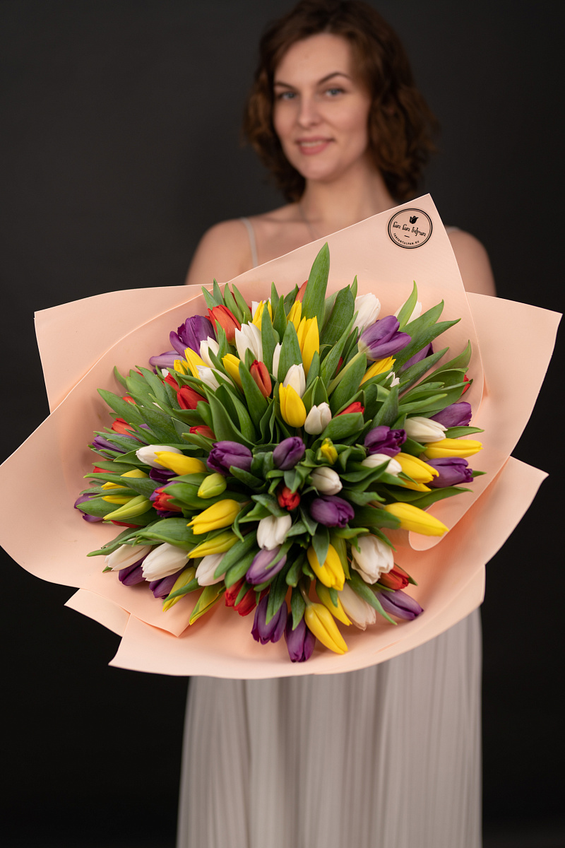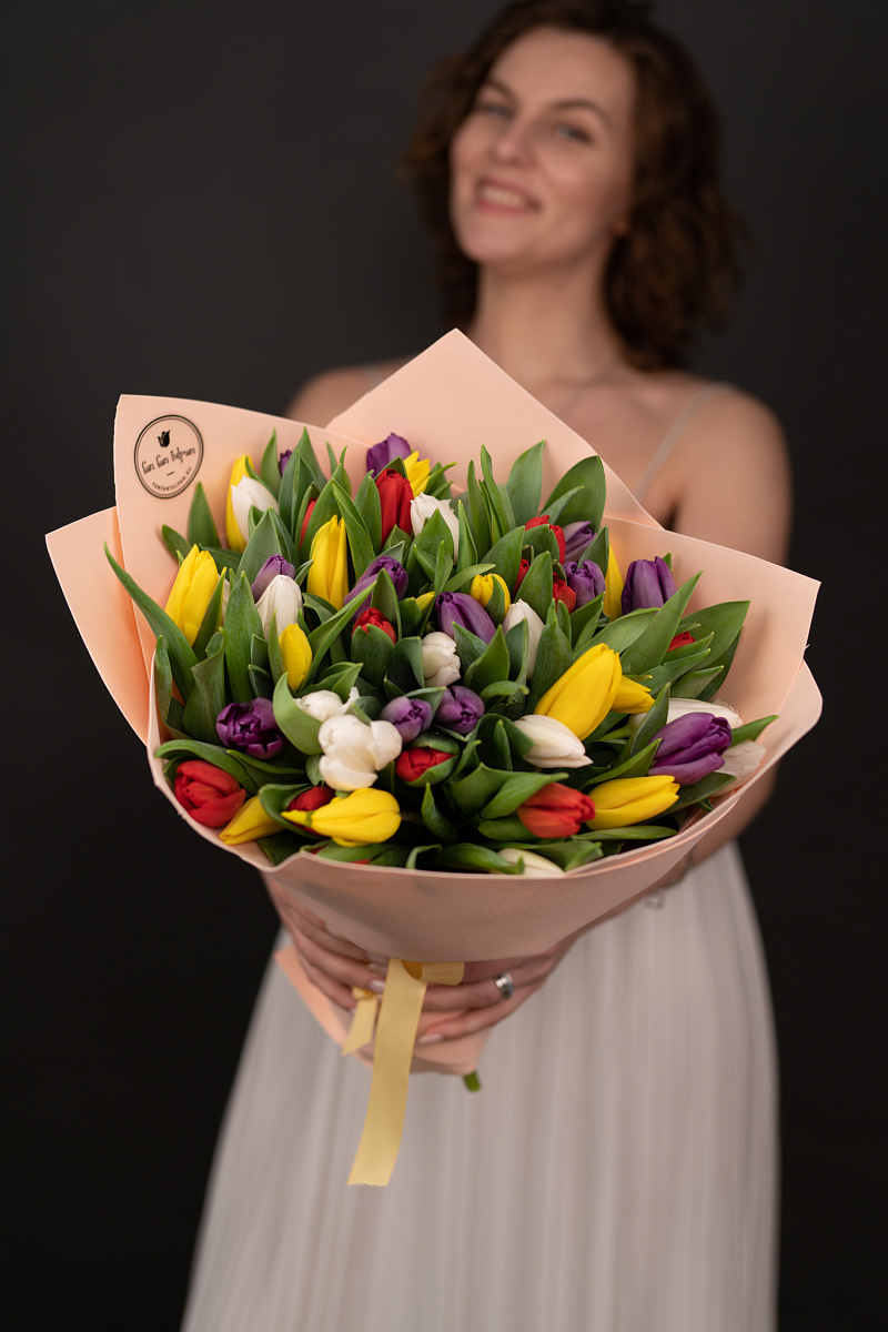 Тюльпаны — это и символ весны, и проявление бесконечной красоты природы. Их нежные лепестки, испускающие легкий аромат, завораживают своей простотой и изысканностью одновременно. И вот, когда ты видишь целый букет из тюльпанов перед собой, то понимаешь, что это произведение искусства, созданное руками талантливых флористов.