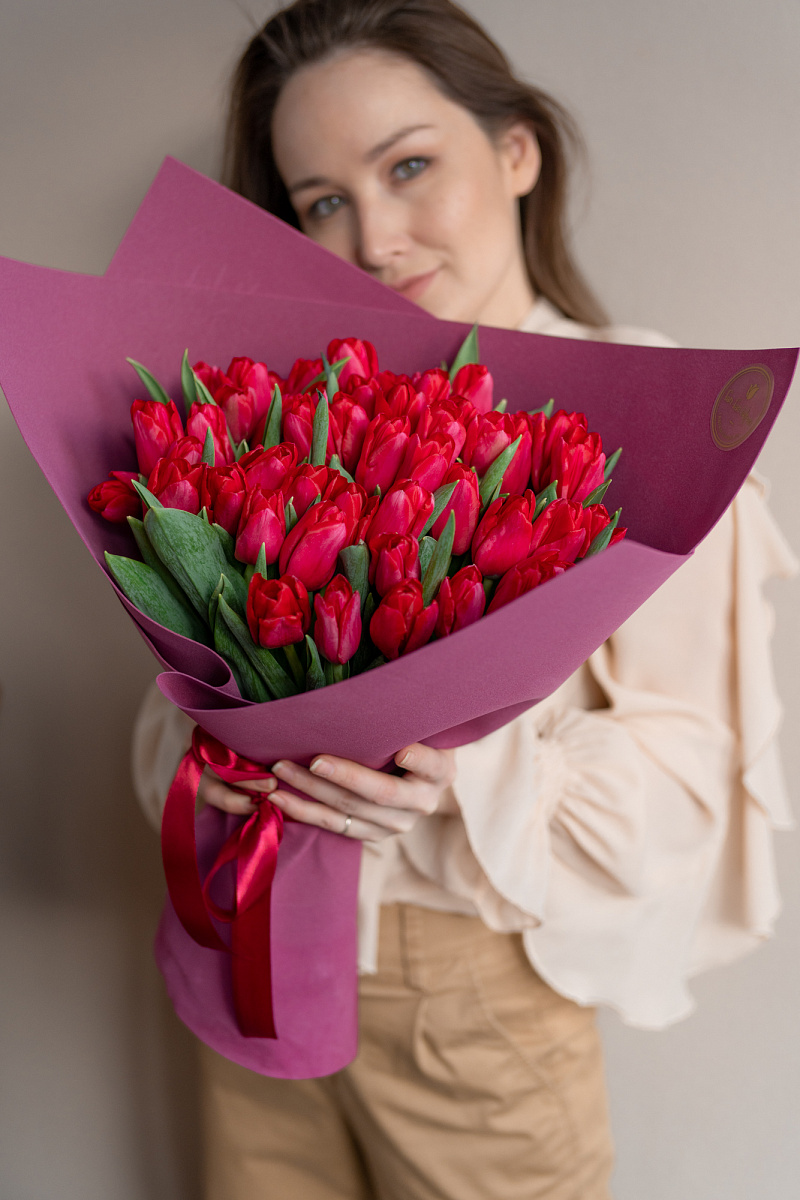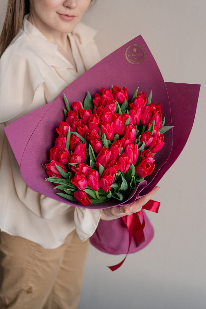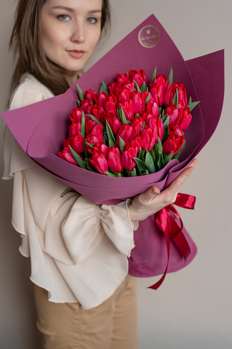 Тюльпаны — это и символ весны, и проявление бесконечной красоты природы. Их нежные лепестки, испускающие легкий аромат, завораживают своей простотой и изысканностью одновременно. И вот, когда ты видишь целый букет из тюльпанов перед собой, то понимаешь, что это произведение искусства, созданное руками талантливых флористов.