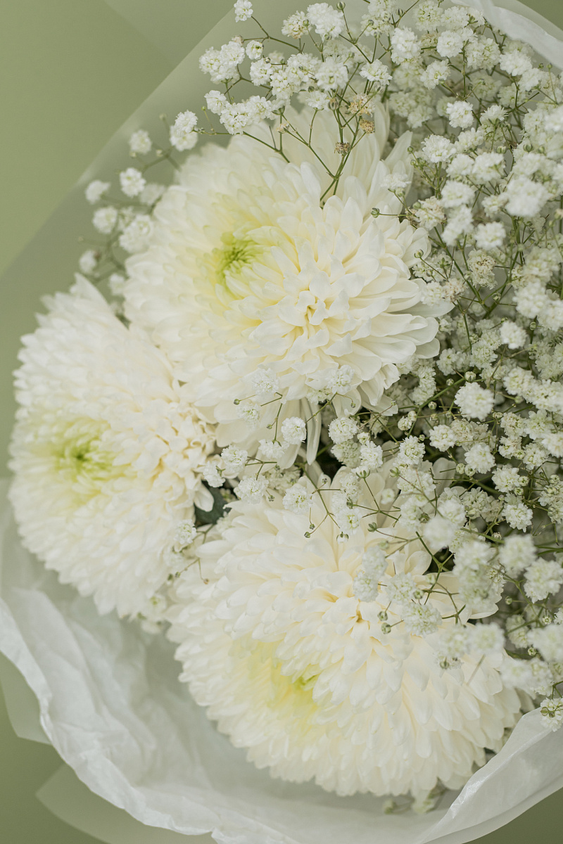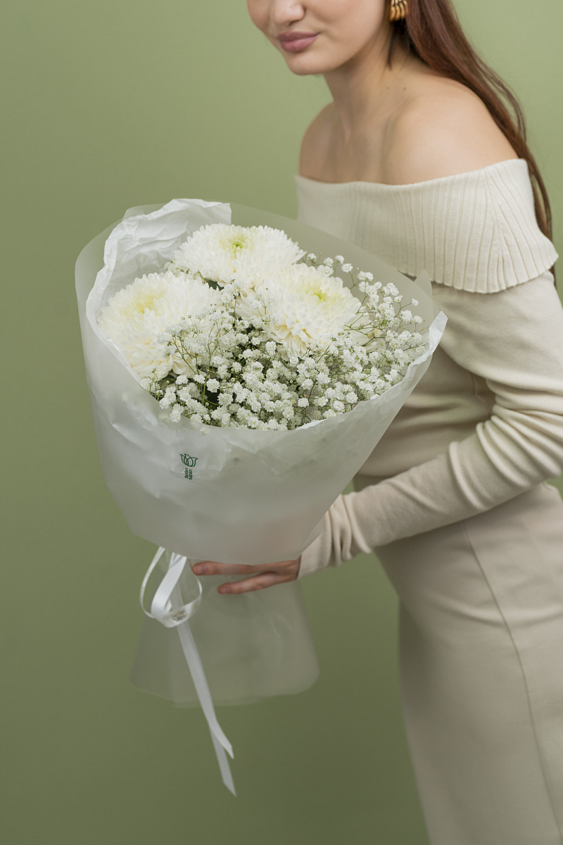 Благодаря дополнению из гипсофилы - ваш букет будет радовать вас своей свежестью и красотой на протяжении долгого времени.