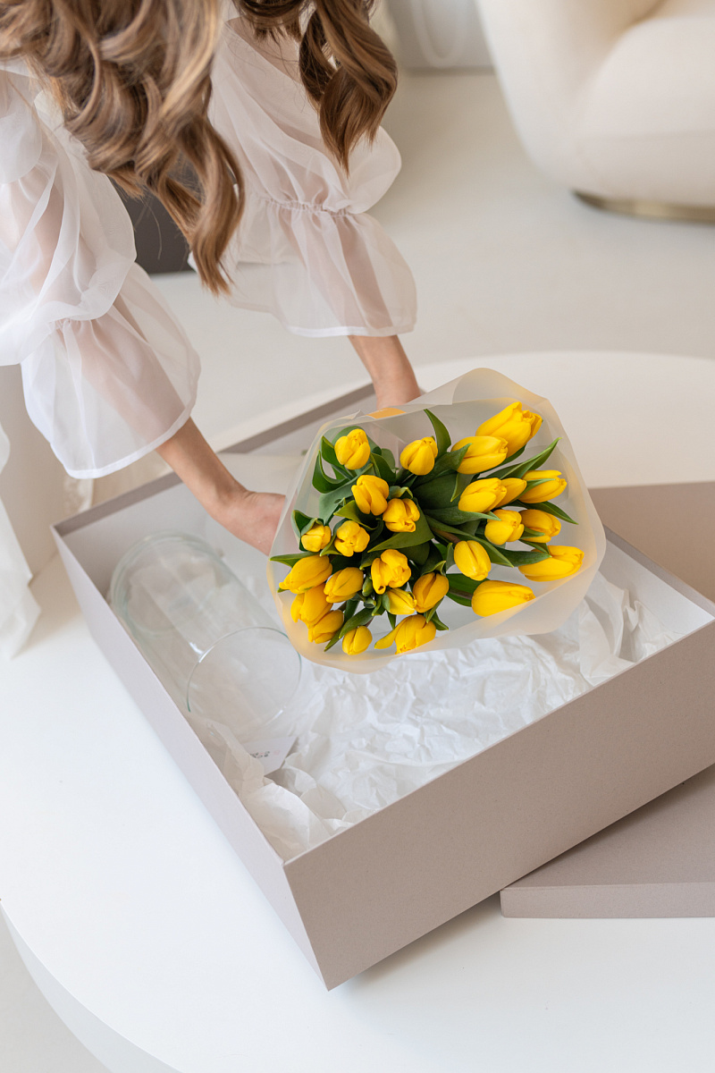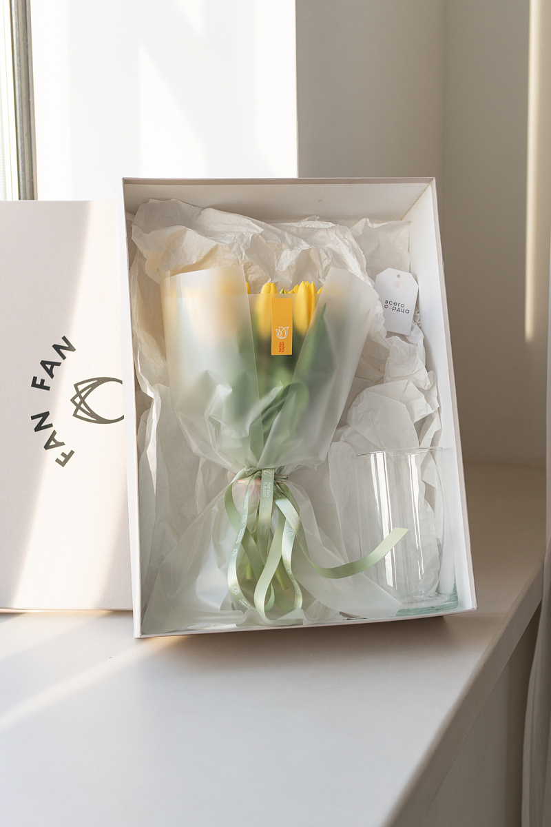 Изысканный подарочный бокс - идеальное решение для трогательного поздравления. Это не просто букет, а продуманный презент, сочетающий живую красоту цветов и практичный элемент интерьера.