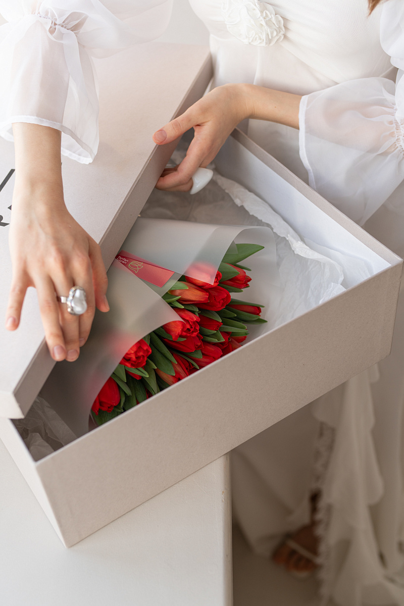 Изысканный подарочный бокс - идеальное решение для трогательного поздравления. Это не просто букет, а продуманный презент, сочетающий живую красоту цветов и практичный элемент интерьера.